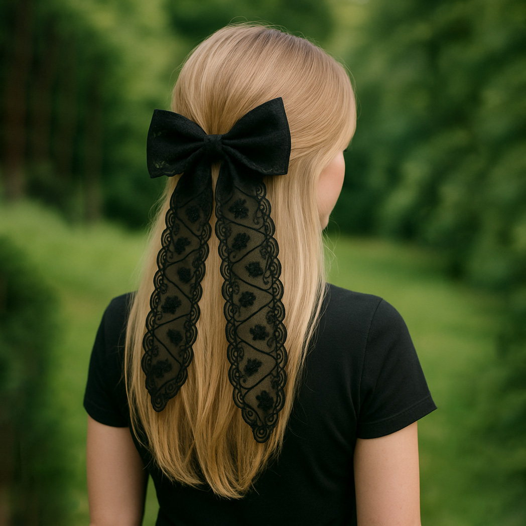 این پاپیون مو از جنس گیپور بلند ساخته شده تا جلوه‌ای شیک و زیبا به موهای بلند ببخشد. با استفاده از گیره فرانسوی ۱۰ سانتی‌متری، به راحتی روی موها ثابت می‌ماند و استایلی جذاب برای شما ایجاد می‌کند.