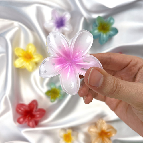 کلیپس پلومریا سایز متوسط با طراحی الهام‌گرفته از گل، مناسب برای استفاده روزانه و مهمانی است. سبک، مقاوم و کاربردی برای انواع مو.